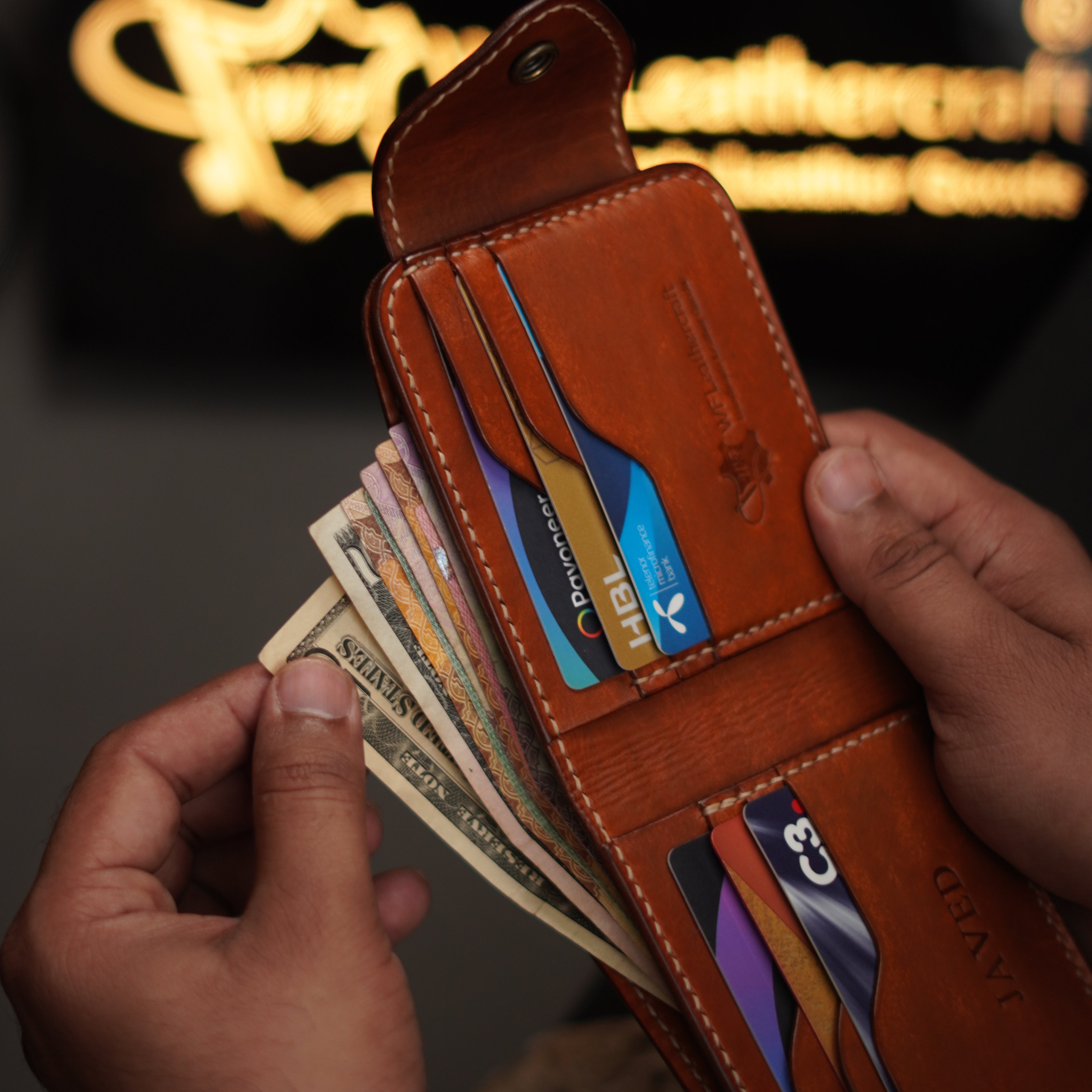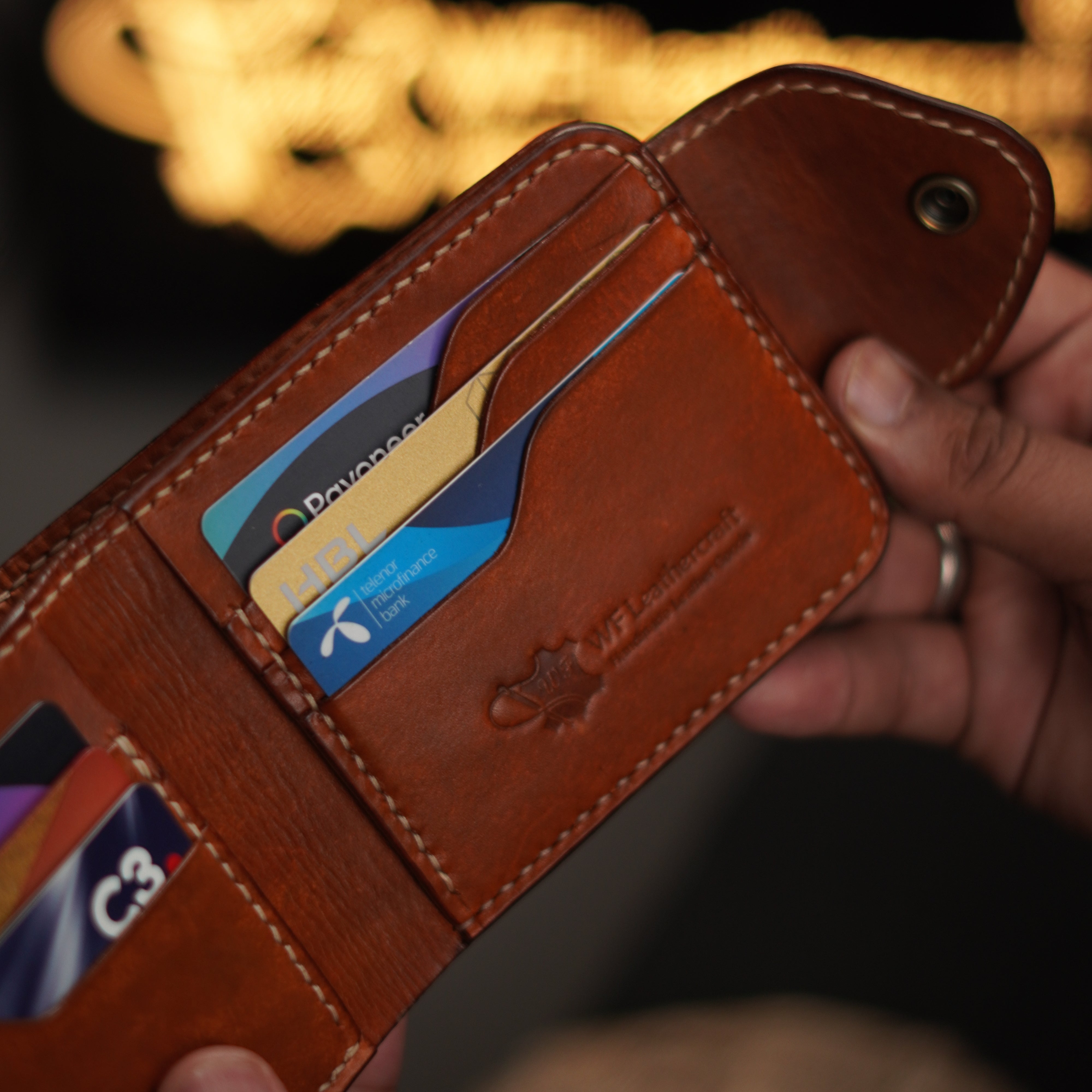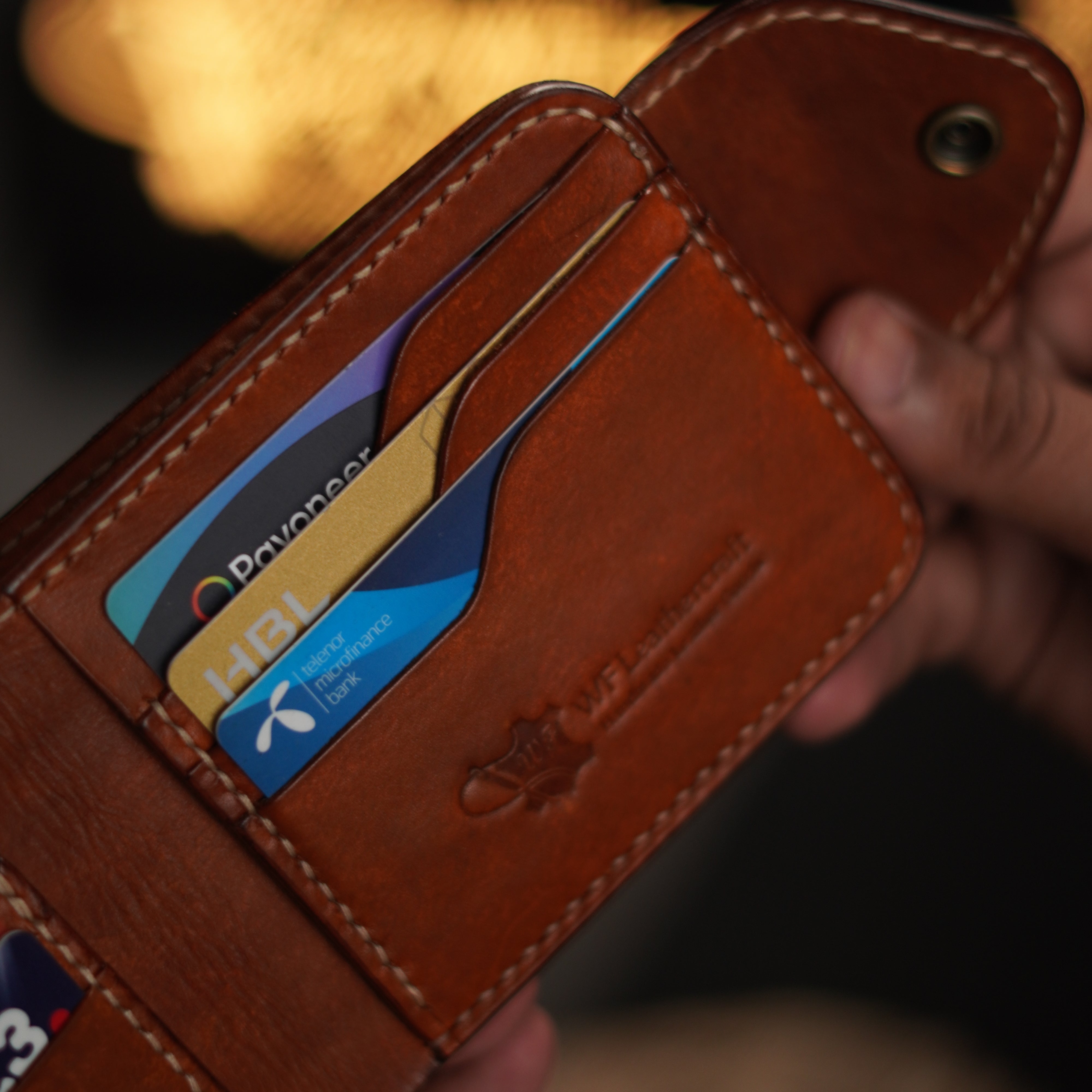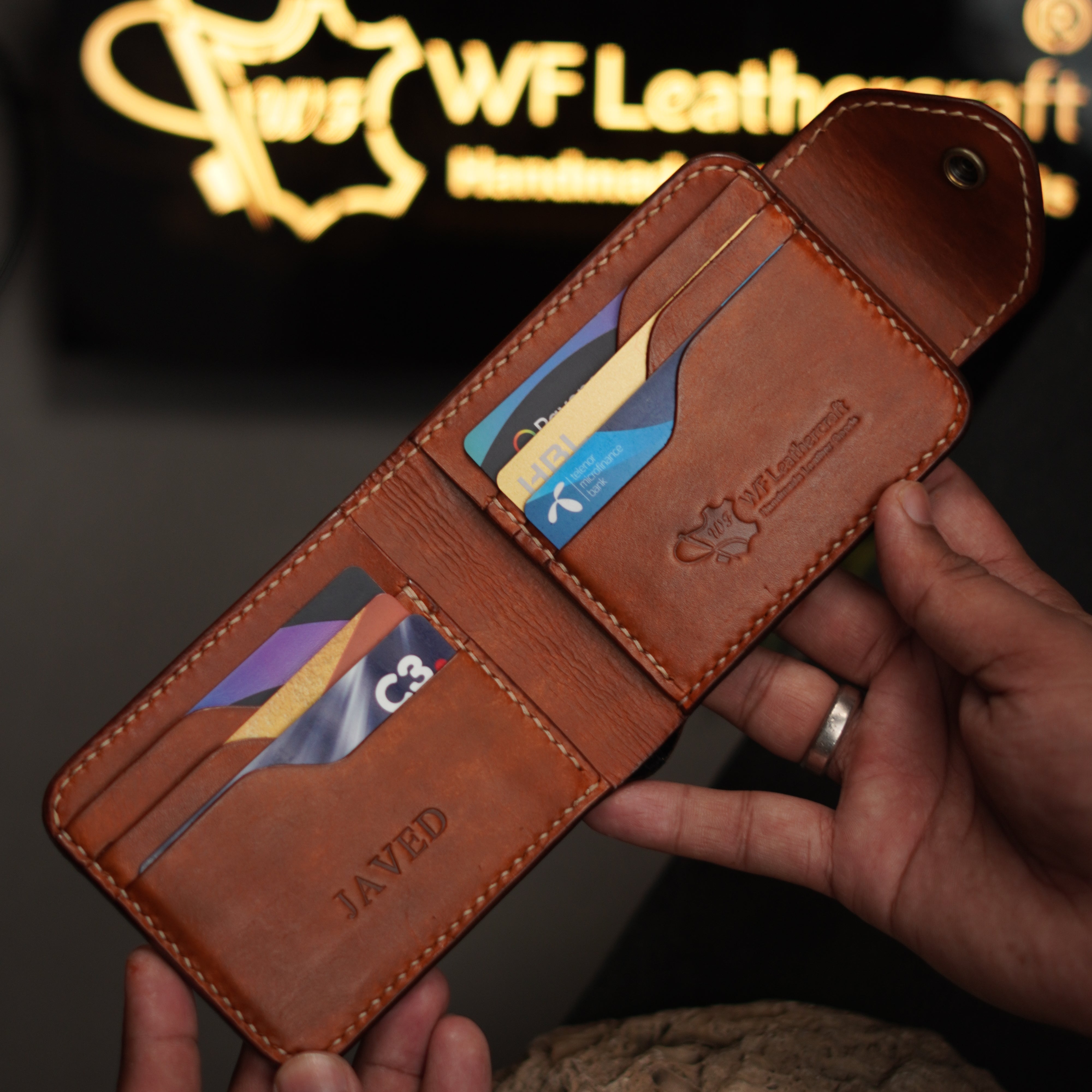 Crafted from 100% natural vegetable-tanned cow leather, this handmade leather wallet blends traditional craftsmanship with modern functionality. It’s a proud creation by WF Leathercraft, one of the top leather brands in Pakistan, known for producing genuine leather wallets that last a lifetime.