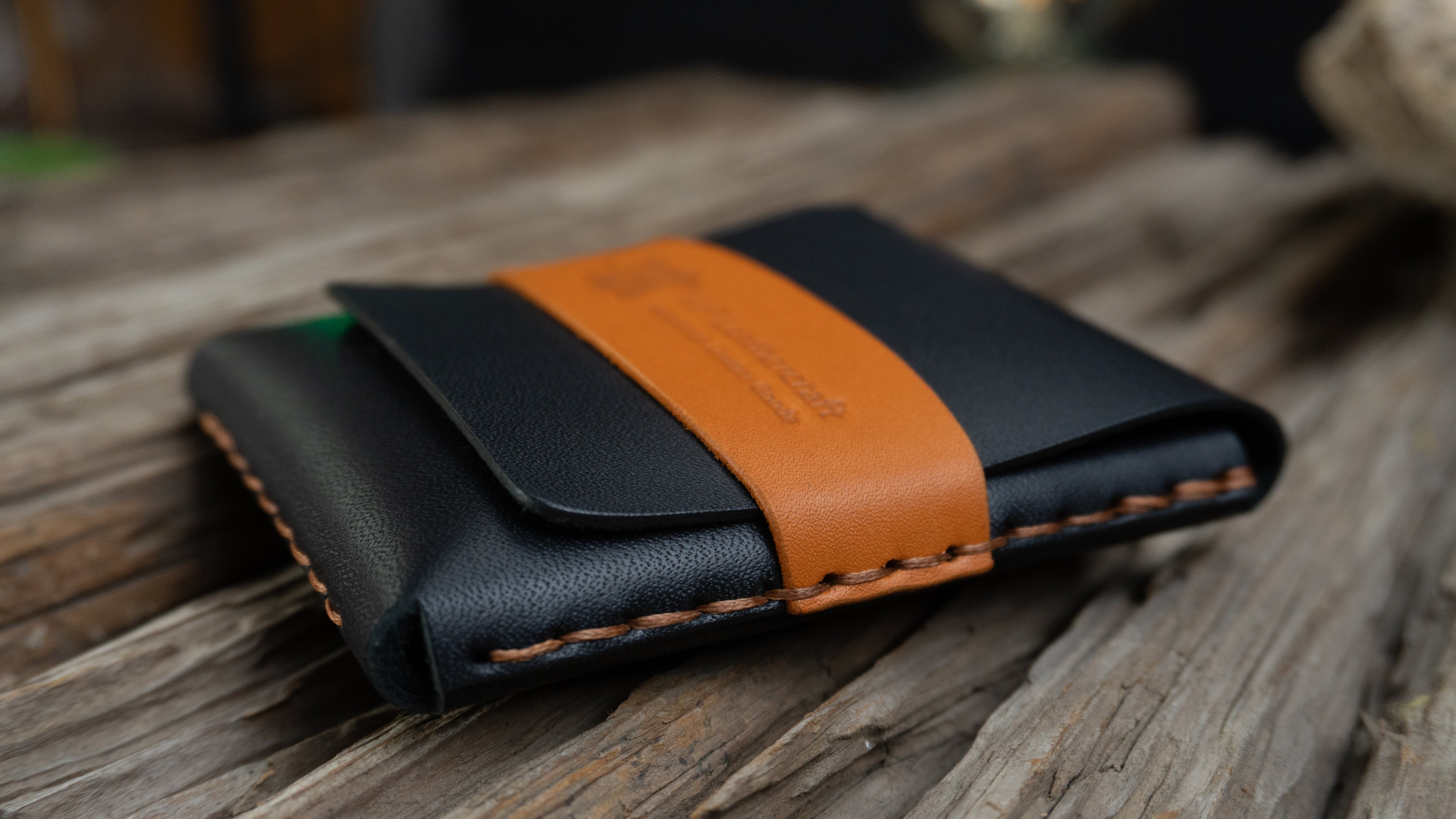 No. 101 All in one Card wallet natural vegtan leather & black combination